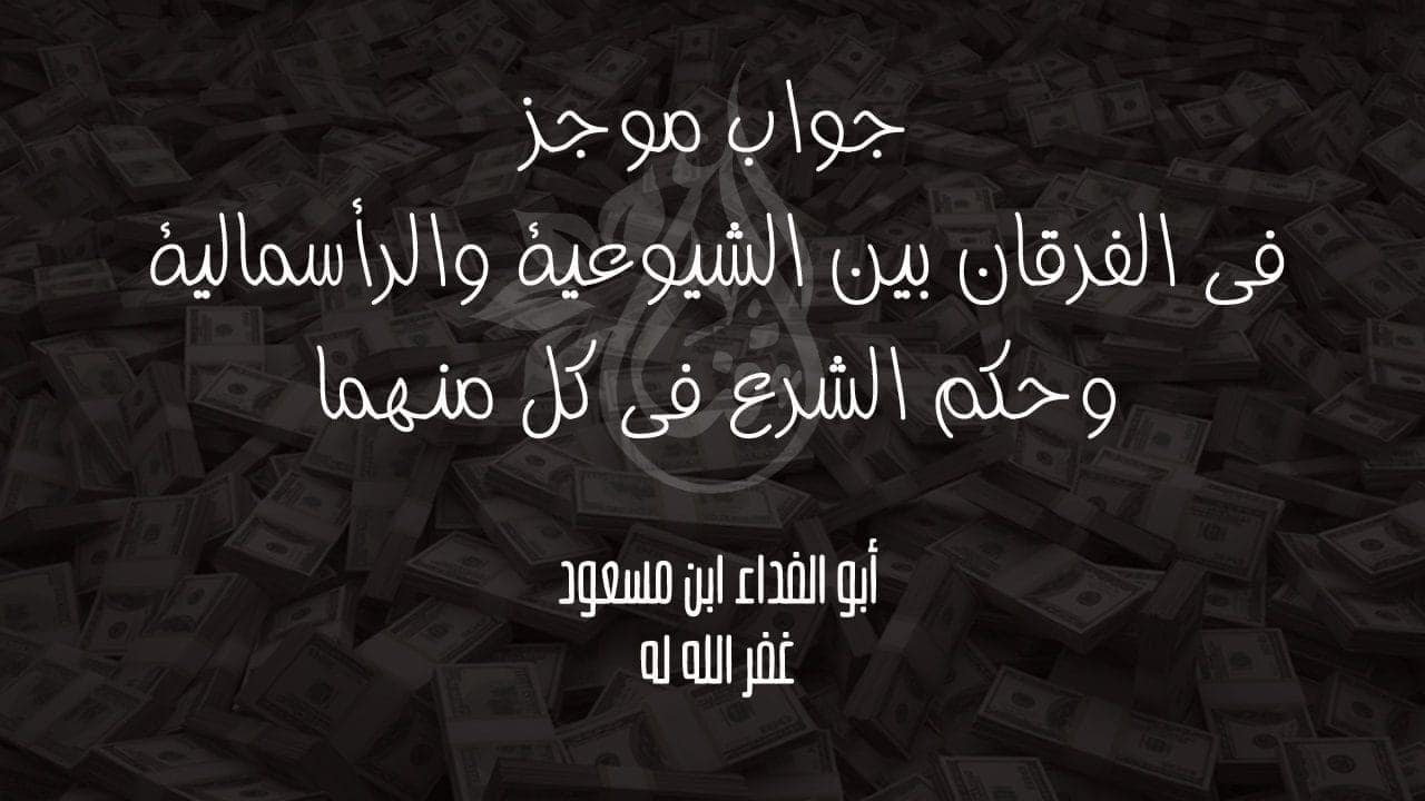 الحمد لله وحده، أما بعد، فقد سألني أحد الإخوة الأفاضل وفقه الله عن حكم الشرع بإيجاز في كل من الشيوعية والرأسمالية، فكتبت له هذا الجواب الموجز، ورأيت أن أنشره هنا لعموم الفائدة.
